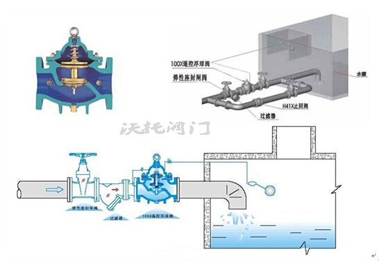 3、100x遥控浮球阀前应装截止阀或闸阀以便于维修。
