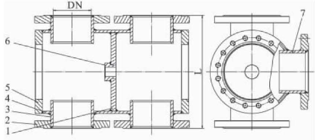 预留焊接收缩量六通阀体结构焊接工艺尺寸L焊前为关键尺寸,是保证符合设计要求的重要尺寸之一。由于成品法兰焊后不再加工, 若保证设计尺寸L,必须考虑焊接的收缩量,施焊前预留收缩量。
